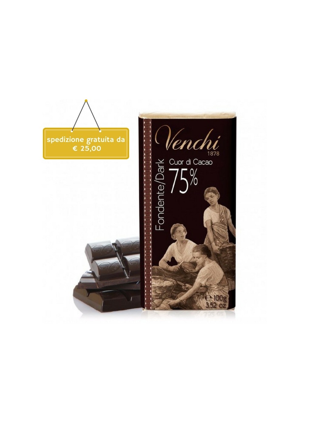 Tavoletta di cioccolato extra fondente 75% con cacao.